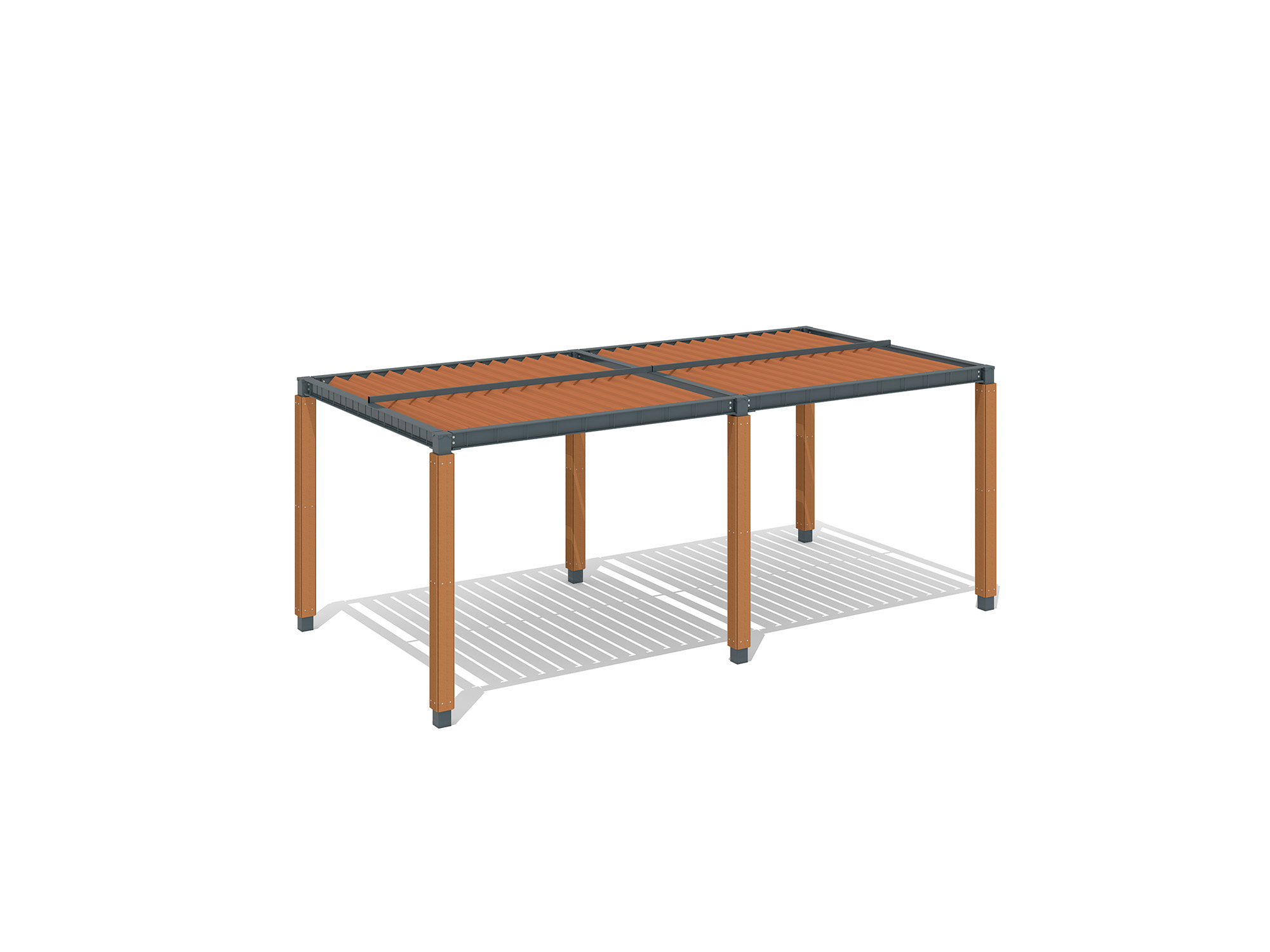 休養施設の鋼材に溶融亜鉛メッキを施して耐久性を格段に高め、製品の長寿命化につなげています。ESW(アインスーパーウッド)の柱化粧