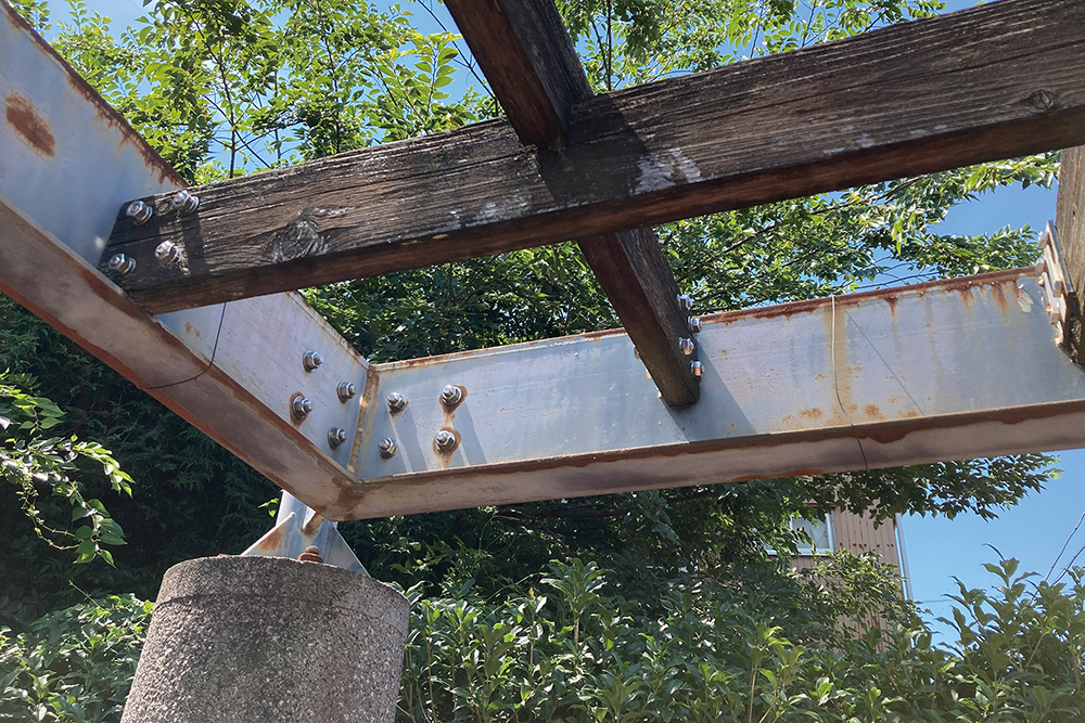 することができるようになりました。パーゴラの支柱と桁フレームは既存のまま使いたいと要望がありましたので、新規でルーバー受け用の桁をフレーム内側に取り付け、シェードルーバーを設置しています。既存の桁フレームもルーバーの色味に合わせて再塗装され、景観と調和のとれたパーゴラへと生まれ変わりました。